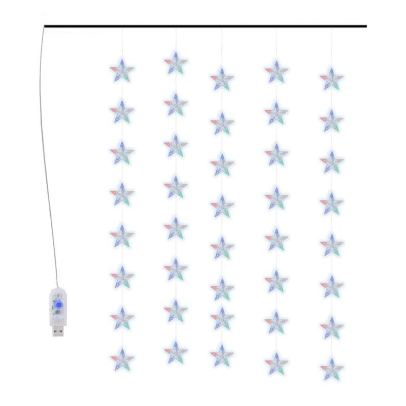 Тази LED завеса от светещи звезди е идеална за употреба като допълнително осветление към всякакви проекти за украса. Подходяща е за Коледа, партита, сватби и други празници. Светещата завеса е снабдена с 200 енергоспестяващи светодиода, създаващи вълшебно осветление. Те имат 8 различни светлинни ефекта: комбинирано, вълни, последователно, бавно светене, мигане, бавно избледняване, блещукане и непрекъснато светене. Той е чудесен декоративен аксесоар за осветяване на вътрешни и външни пространства. Забележка: Включеното USB не е водоустойчиво, така че тази част трябва да избягва водата, но благодарение на 3-метровия кабел коледната украса може да се използва на открито, тъй като кабелът и продуктът са водоустойчиви. Продуктът има USB конектор, но не е включен сертифициран източник на захранване от 5V USB.