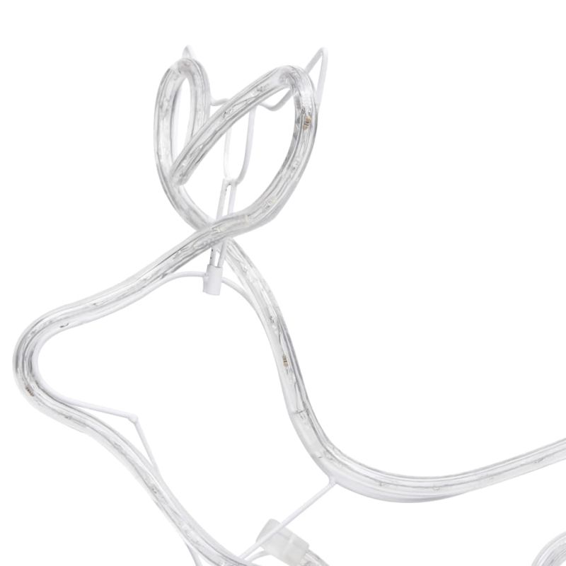 Добавете светлина в дома си по време на тази Коледа със светещата коледна украса. Тази декорация е с водоустойчив клас IP44. Северният елен и шейната са осветени от многоцветни LED лампи за мека светлина, което ги прави идеална украса както за закрито, така и за открито. LED въжето е снабдено с 36 крушки на метър и с общо 252 ултра-ярки светодиода с енергоспестяващи функции. Моля, обърнете внимание: Щепселът е включен в доставката. За безопасност използвайте светещия кабел само в комбинация с ДТЗ (дефектнотокова защита) (не е включен).