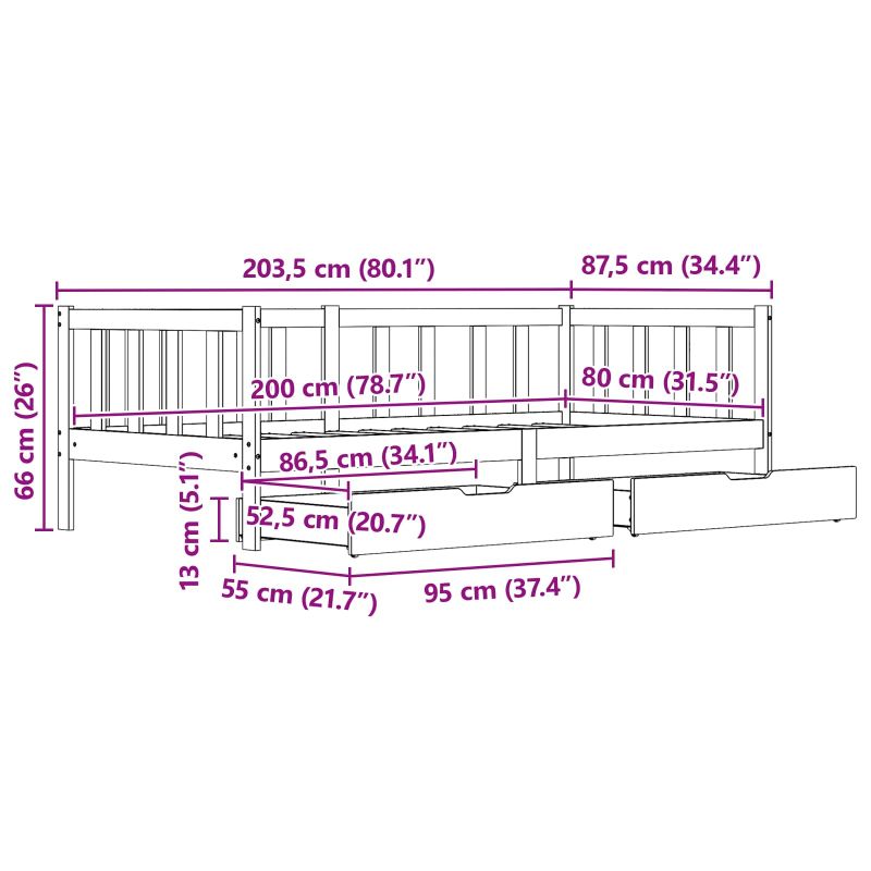 Този преобразуем дневабд е перфектна смес от функционалност и стил, проектиран да подобри всяка спалня. Изработен от масивна борова дървесина, той предлага надеждност и качество. Восъчният кафяв завършек добавя топлина и еlegантност, подходящ както за модерни, така и за традиционни интериори. Прекрасен е за тези, които търсят нещо адаптивно, предлагаща комфорт и пространство за съхранение без да жертва стила. Масивна борова дървесина: Изработен от масивна борова дървесина, този дневабд е силен и издръжлив. Восъчният кафяв завършек създава топла, приветлива атмосфера подчертаваща всяка спалня. Избрано е, за да издържи дълго време с години надеждно ползване. Преобразуемост: Дневабдът смело преминава от седене на спане. С адаптивната си природа, той е идеален, независимо дали приемате гости или просто искате да се отпуснете с книга. Чекмеджета под леглото: С две плъзгащи чекмеджета, този дневабд предлага практично съхранение. Чекмеджетата се плъзгат лесно и осигуряват достъп до вашите неща, спално бельо или други потребни неща, без да заемат излишно място. Модерен дизайн: Съвременните му линии и минималистичен стил правят този дневабд универсално допълнение за всякакви интериори. Квадратните крака и здравата основа подчертават модерния му вид. Лесни инструкции за поддръжка: Поддържайте изгледа му, като го избърсвате редовно със суха кърпа. Проектиран е за малко обслужване и с тези начини за грижа, дневабдът ще остане привлекателен акцент в спалнята ви.