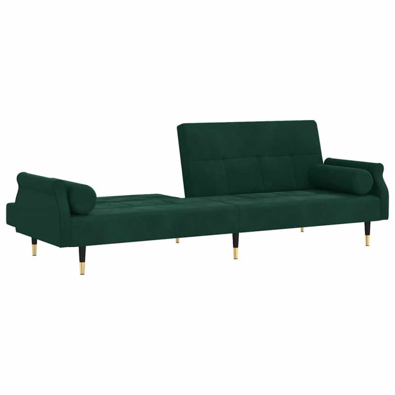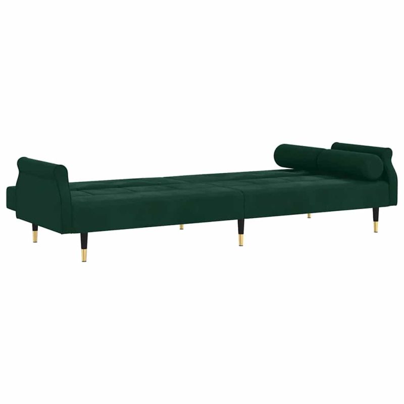Разтегателен диван с възглавници, тъмнозелен, кадифе