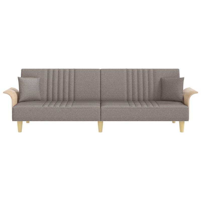 Това разтегателно канапе е перфектно за гости с преспиване, като същевременно осигурява удобно място за сядане през деня. Издържлив материал: Тъканта се отличава със семпъл и изчистен вид и е дишаща и издръжлива. Регулируема облегалка: Можете да натиснете двете отделни облегалки на канапето частично или напълно надолу, за да създадете идеално място за дрямка или двойно легло. Удобна седалка: Разтегателният диван е много удобен с дебело подплатени седалки, подлакътници и облегалки.Практични възглавници: Тези възглавници не само украсяват декора ви, но могат да добавят допълнителен комфорт, когато седите или лежите. Здрава и стабилна рамка: Рамката от шперплат на дивана осигурява здравина и стабилност.