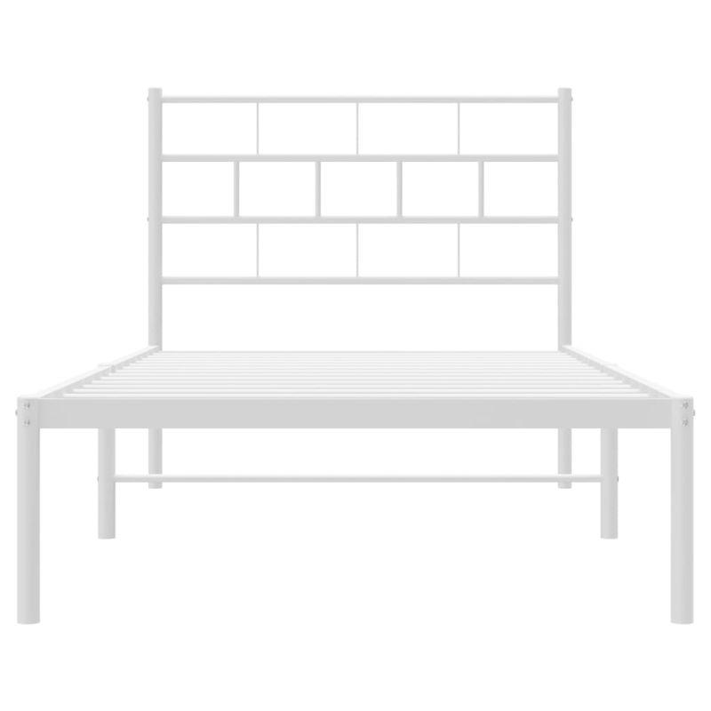 Метална рамка за легло с горна табла, бяла, 90x200 см