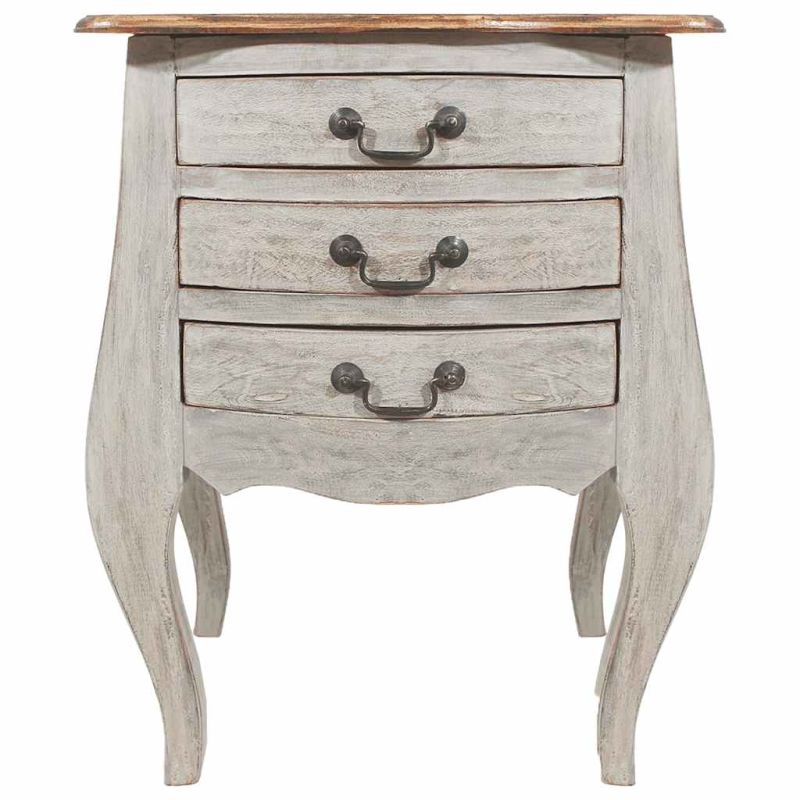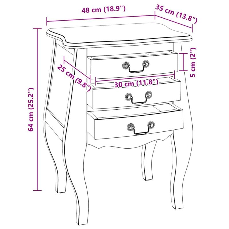 Това нощно шкафче в старинен стил и с елегантен дизайн ще добави изисканост към вашата спалня. Изработено от масивна махагонова дървесина, това нощно шкафче от масивна дървесина е изключително издръжливо и здраво. Махагонът е тропическа твърда дървесина, която се отличава със своята красота, издръжливост и цвят. Използвана е специална изработка, за да се придаде на този артикул винтидж, топъл и автентичен вид. Всяка мебел е уникална и малко по-различна от следващата. Следите от износване и изработката на това изцяло ръчно изработено нощно шкафче придават на всяка мебел уникален вид и допринасят за впечатляващия ѝ винтидж стил. Този шкаф има 3 чекмеджета с достатъчно място за съхранение на различни предмети. Важна забележка: Цветовете може да варират, което прави всеки от нашите шкафове уникален; доставката е на случаен принцип.