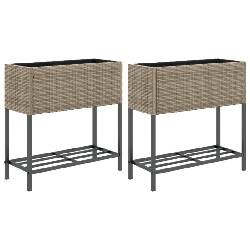 Градински плантери с рафт, 2 бр, сив, 70x28x70 см, полиратан