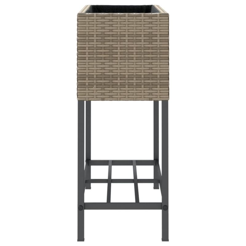 Тези градински кашпи са идеален избор за отглеждане на различни цветя или растения. Издръжлив материал: PE ратан, известен също като полиратан, е здрав синтетичен материал с малко необходима поддръжка, който прилича на естествен ратан. Той е лек, лесен за почистване и често се използва за външни мебели поради своята издръжливост и устойчивост на атмосферни влияния.Здрава и стабилна рамка: Прахово боядисаната стоманена рамка е здрава, стабилна, издръжлива и устойчива на корозия и неблагоприятни атмосферни условия, което гарантира дълготрайна експлоатация.Два начина за използване: Можете да използвате нетъканата торбичка като подложка и да напълните кашпата с пръст или можете просто да поставите саксии вътре.Практичен рафт: Градинската кашпа е проектирана с рафт, който ви позволява да съхранявате пръст за саксии и аксесоари за растенията за лесен достъп. В допълнение, рафтът не позволява вода, трева и мръсотия от земята да докосват повдигнатия плантер за зеленчуци, за да се поддържа чист и красив.Декоративна функция: Плантерната кутия може да побере любимите ви растения или цветя, което е идеално за декориране на вашия интериор.