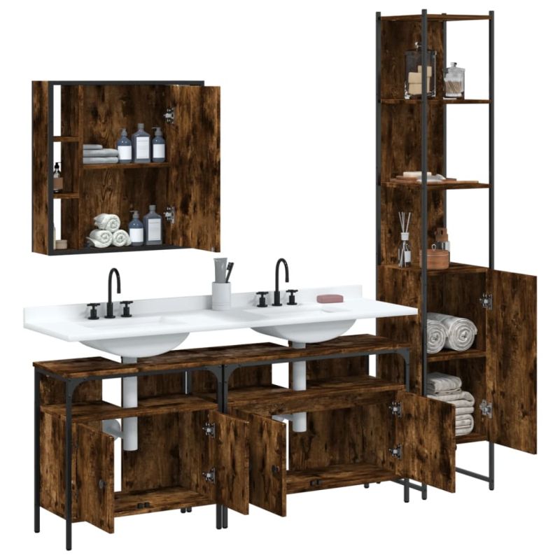 Комплект шкафове за баня от 4 части инженерно дърво Опушен дъб