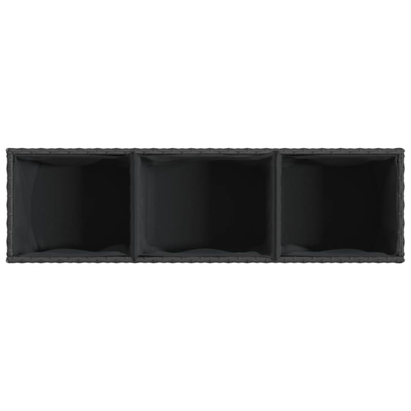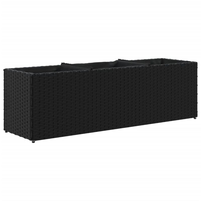 Градински сандък с 3 саксии, черен, 105x30x32 см, полиратан