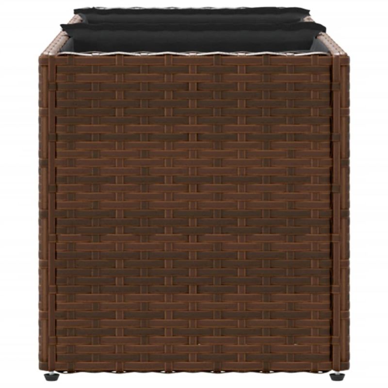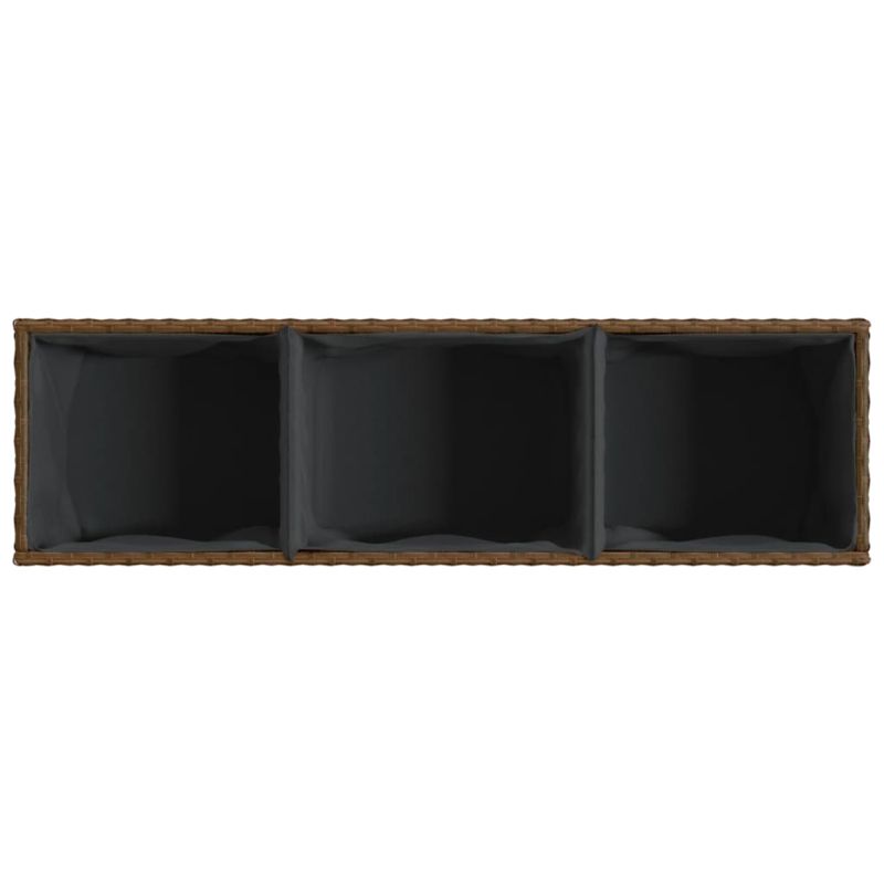 Градински плантер с 3 саксии, кафяв, 105x30x32 см, полиратан