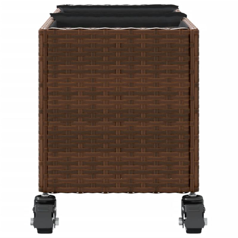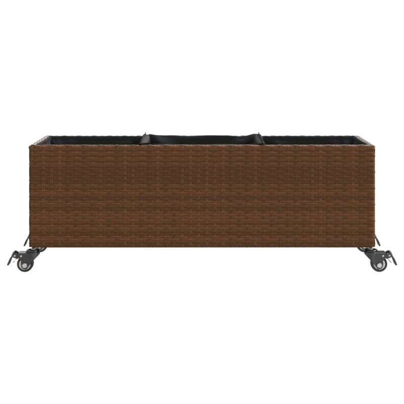 Външен плантер с колела и 3 саксии кафяв 107x32x38 см полиратан