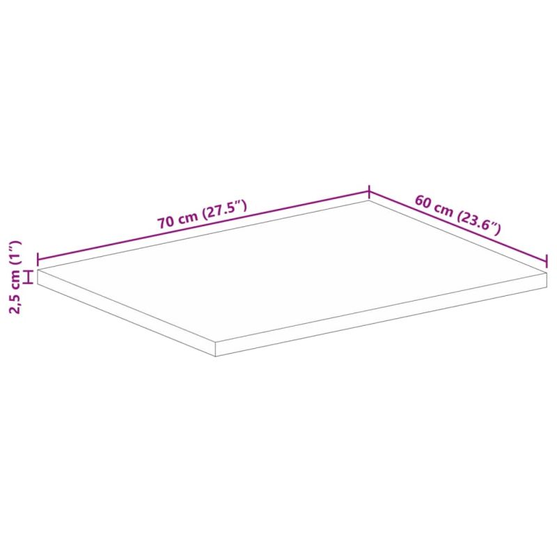 Плот за маса 70x60x2,5 см правоъгълен масивно дърво грубо манго