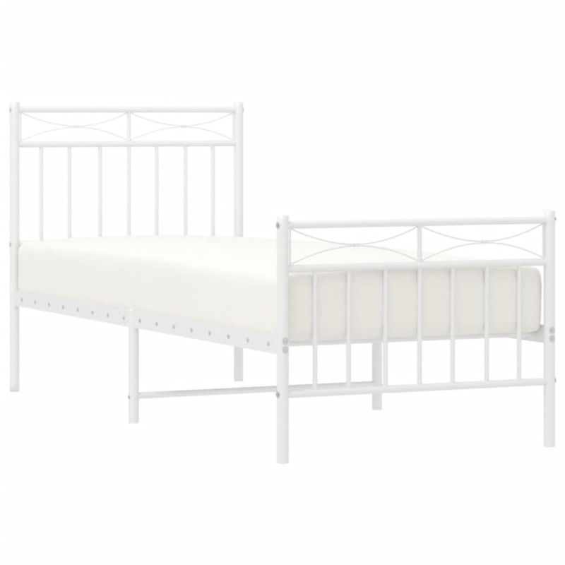 Метална рамка за легло с горна и долна табла, бяла, 75x190 см