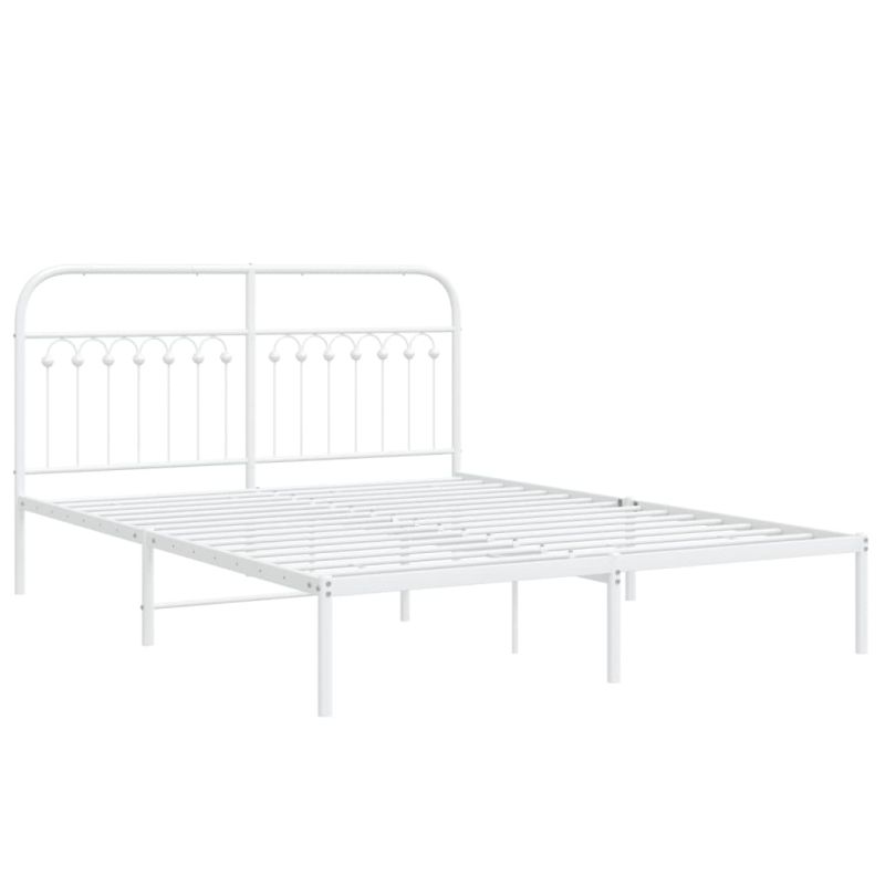 Метална рамка за легло с горна табла, бяла, 160x200 см