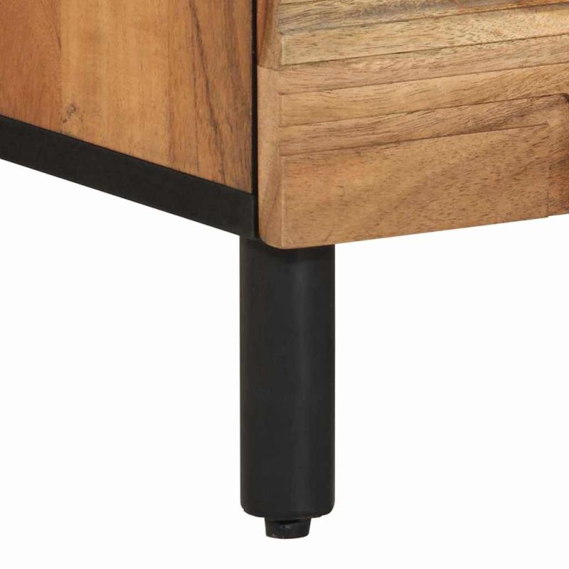 Тази модерен дървен нощен шкаф е страхотно допълнение за всяка спалня. Със своя рустичен дизайн, акцентува красотата на акациевото дърво, като внася топлина и уют. Компактният му размер го прави перфектен спътник – идеално място за лампа, будилник или лични вещи. Гладката му повърхност засилва вида и създава приятно усещане в стаята. Масивна акациева дървесина: осигурява стабилна конструкция, която издържа на ежедневна употреба. Дървото естествено устоява на надрасквания и следи, а уникалният модел на зърната му придава характер. Удобно съхранение: чекмедже и долен шкаф предлагат достатъчно място за организиране на всичко необходимо – книги, очила и лични вещи. Лесният механизъм с дръжка осигурява бърз достъп. Компактни размери: с размери 50 x 33 x 62 см, идеално за малки помещения. Дизайнът спестява пространство, но запазва стил, удобно побиращ се до леглото ви или в ъгли на стаята. Рустичен стил: естествени тонове и текстури на дървото създават винтидж вид, който ще се съчетае с всякакви интериори, добавяйки уют в спалнята. Лесна поддръжка: просто избърсвайте с суха кърпа, за да го запазите в отлично състояние, без агресивни химикали.