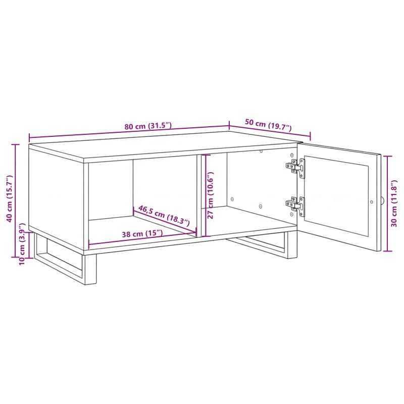 Тази елегантна дървена масичка за кафе е перфектното съчетание между стил и функционалност. Тя е централна част от всекидневната. Правоъгълната ѝ форма и естественото покритие я правят притегателен элемент, независимо дали я ползваш за кафе, списания или декорации. С нея всяко пространство става по-приветливо и спокойно, а същевременно предлага достатъчно повърхност и място за съхранение. Материали: Масичката за кафе е от здраво мангово дърво, красиво и стабилно. Естествените шарки създават топла и приятна атмосфера, което я прави подходяща за всяка всекидневна. Дава дългосрочна поддръжка за редовна употреба. Включени съставки: Тази масичка включва просторна горна част и врати с панти с елегантен кафяв завършек. Массивните врати обуславят стабилността на масичката и предлагат елегантен и практичен външен вид. Пантите осигуряват лесен достъп до вътрешността, идеално за съхранение на всякакви предмети. Просторно съхранение: С голямо вътрешно пространство, масичката е идеална за организиране. Съхранява всякакви неща, като книги, електроника и пледове. Планирано затвореното съхранение поддържа реда у дома. Функционален дизайн: С правоъгълната си форма, масичката става част от всяка конфигурация. Може да служи като бюро или за посрещане на гости. Стилният и прост дизайн подчертава функционалността. Вътрешна употреба: Проектирана за вътрешни пространства, масичката е идеална за всекидневната. Със своята адаптивност подобрява декора и създава уют за семейни и приятелски събирания.