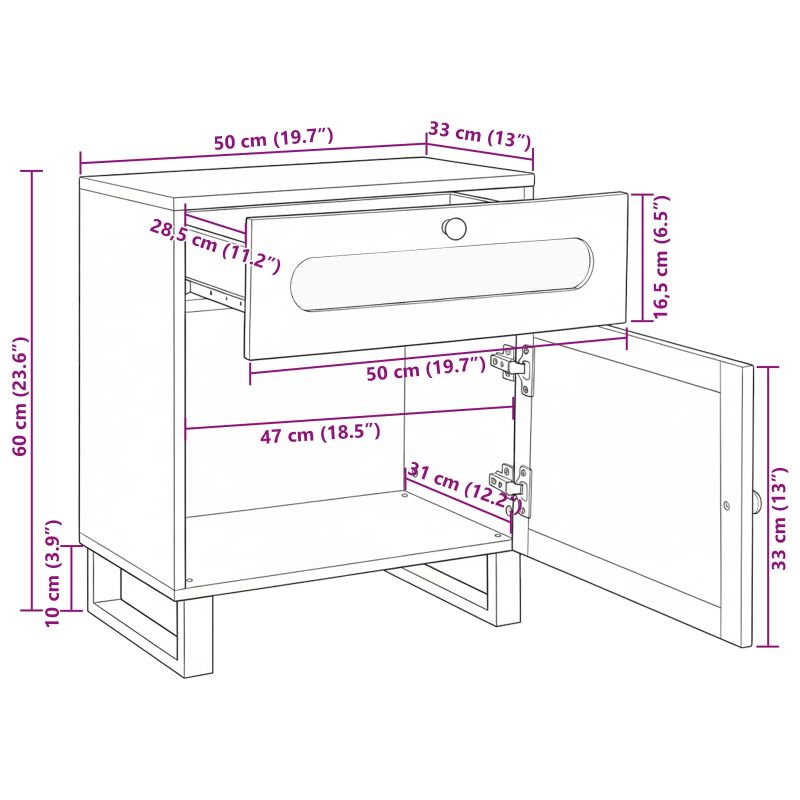 Нощен шкаф Естествен 50 x 33 x 60 см Солидно мангово дърво