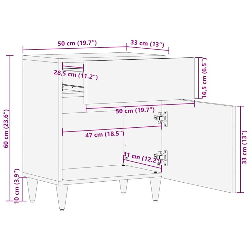 Това шкафче от масивно дърво има яко рустикално дизайнче, което подчертава естествената красота на твоята спалня. Умелото му изработване и перфектните размери му позволяват да бъде удобна повърхност за лампа, будилник и всякакви лични вещи. Визията на шкафчето добавя уют и стил, идеално се вписва в спалнята и създава приятно пространсво. Здрава конструкция: Направено е от качествено масивно акациево дърво, което осигурява дълготрайност и стабилност, добавяйки елегантен вид на всяка стая. Естественият финиш допълва различни интериорни стилове, съчетавайки функционалност с вечна красота. Функционално съхранение: С традиционно чекмедже и удобна дръжка, това шкафче предлага практично пространство за съхранение на лични вещи, осигурявайки лесна организация и достъп до тях, без да жертва стила. Рустикален вид: Рустикалният финиш създава уютна атмосфера в спалнята. Суровите текстури и естествени тонове правят това шкафче фокусна точка, увеличаваща топлината и уюта на всяко пространство. Компактен дизайн: С размери 50 x 33 x 60 см, това шкафче е точно вълшебното решение за повечето спални. То предлага основно пространство в компактен размер, перфектно за по-малки стаи или уютни кътчета. Лесно сглобяване: Шкафчето се сглобява лесно с отвертка и е проектирано за двама. Този бърз и прост процес позволява на всеки да се наслаждава на новото си мебели без никакви затруднения.