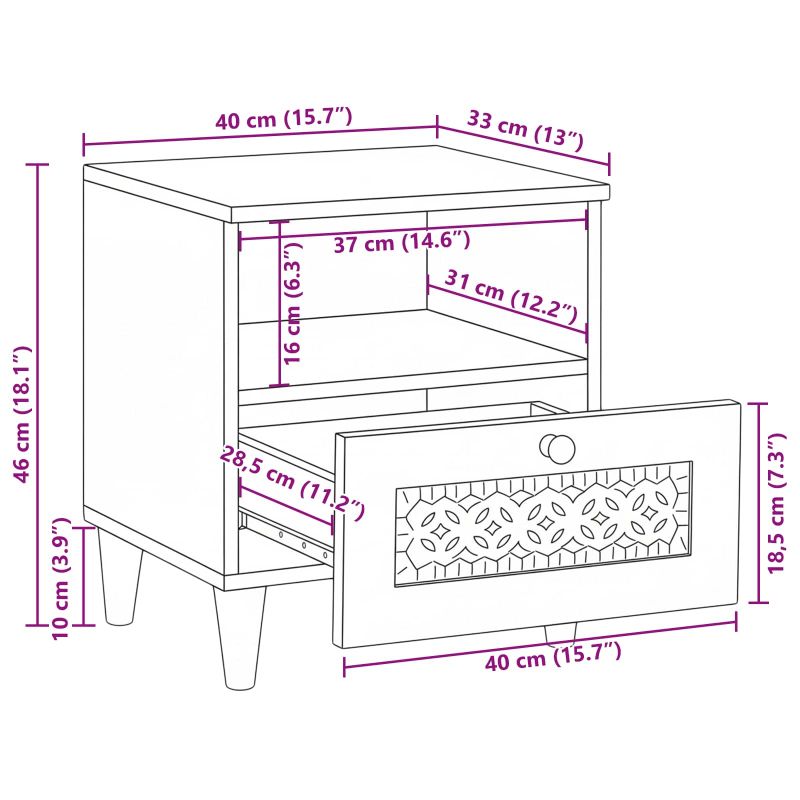 Това масивно нощно шкафче съчетава рустикален чар и практичност, идеално за подобряване на атмосферата в спалнята. То е надежден спътник за леглото, с опростен, но стилен дизайн, който отговаря на нуждите ви от стил и практичност. Масивната текстура и естественият финиш придават уют на помещението, докато осигуряват и удобно място за ваши лични вещи. С изчистения си силует и естествени цветове, шкафчето е идеално допълнение към всяка стая, която иска да получи хубаво излъчване.]},{,Language,Translation, Материали: Изработено от масивна акациева дървесина, това шкафче сочи с устойчива конструкция за дълготрайност. Натуралният вид на акациевата дървесина придава топла атмосфера, създавайки спокойствие в спалнята. Инженерната дървесина също я подсилва, за да е стабилна нито за момент., Включени компоненти: С проектирано с голямо чекмедже, шкафчето има обилно пространство за съхранение на основни вещи – мобилни устройства, книги или неща, важно за всяка нощ. Чекмеджето се отваря лесно с дръжка, правейки достъпа до вещите ви или каквото търсите много бързо., Характеристики / Функционалност / Дизайн: Издръжливото му рустикално излъчване ще устои на времето с грация. Рустикалният стил подчертава естествената красота, а гладката текстура на повърхността е предизвикателството за визуален интерес. Материал от масивно мангово дърво Това шкафче е направено от качествено мангово дърво, което му дава здравина и красив ръстикален вид. Манговото дърво е известно със своята издръжливост, така че ще изглежда отлично дори при ежедневна употреба. Освен това, естествените вариации на зърната правят всяко шкафче уникално, добавяйки характер към дома ти. Също е достатъчно здраво, за да побере всичките ти нощни принадлежности. Вграден рафт и чекмедже За удобно съхранение, това шкафче идва с полезен рафт и чекмедже. Имаш достатъчно място да организираш книги и лични вещи, така че да държиш всичките си нощни нужди на ръка разстояние. Рафтът е проектиран да се вписва прекрасно в дизайна, подобрявайки елегантния вид на масата, докато максимизира функционалността в тесни пространства. Матово покритие Нематериалното матово покритие придава класически вид, комбинирайки традиционен стил с модерен дизайн. Това покритие не само изглежда страхотно, но и помага за устойчивостта на износване. Идеално е за различни стилове на декорация, от минималистичен до класически, правейки го вечен елемент за всяко помещение. Традиционен декор Шкафчето има класически линии и внимание към детайлите, представлявайки традиционен стил, който подобрява атмосферата в спалнята или всекидневната. Неговото присъствие добавя уют и комфорт, действайки като стилен акцент, който се съчетава добре с друга мебелировка. Независимо дали е в спалнята ти или в хола, то се вписва идеално в различни интериорни теми. Инструкции за поддръжка За да го запазиш в добро състояние години напред, просто го избърсвай с суха кърпа. Избягвай агресивни химикали или абразиви, за да запазиш повърхността. Не е нужно много, за да изглежда стилно и готово за твоите ежедневни нужди у дома.