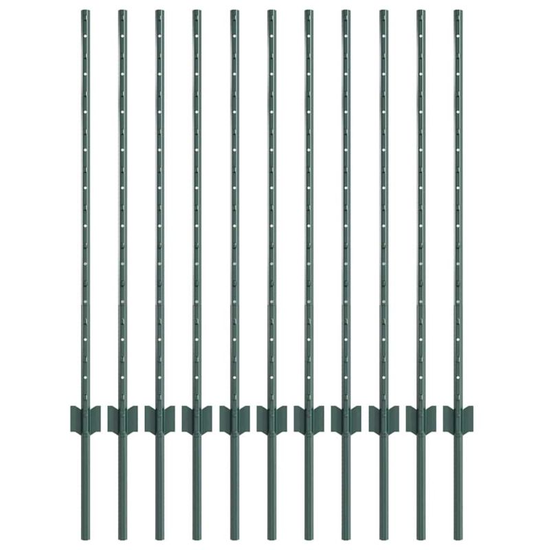 Стълб за ограда. 11 pcs Зелен 100 cm Стомана