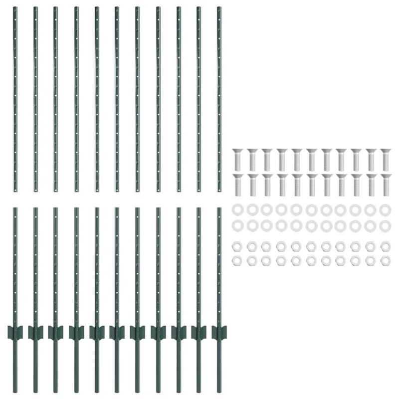 Стълб за ограда. 11 pcs Зелен 140 cm Стомана