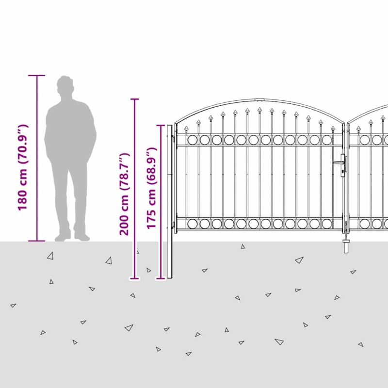 Врата за ограда с заключване Сив 301 x 224.5 см Стомана