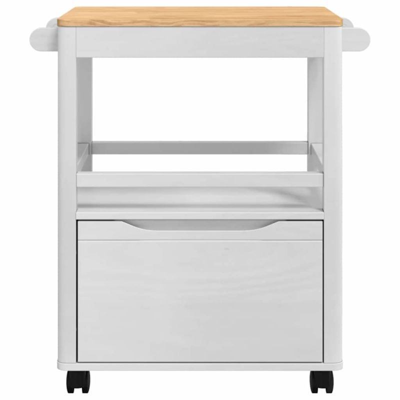 Кухненска количка FLORO Бяло 72,5 x 45 x 80 см Солиден бор