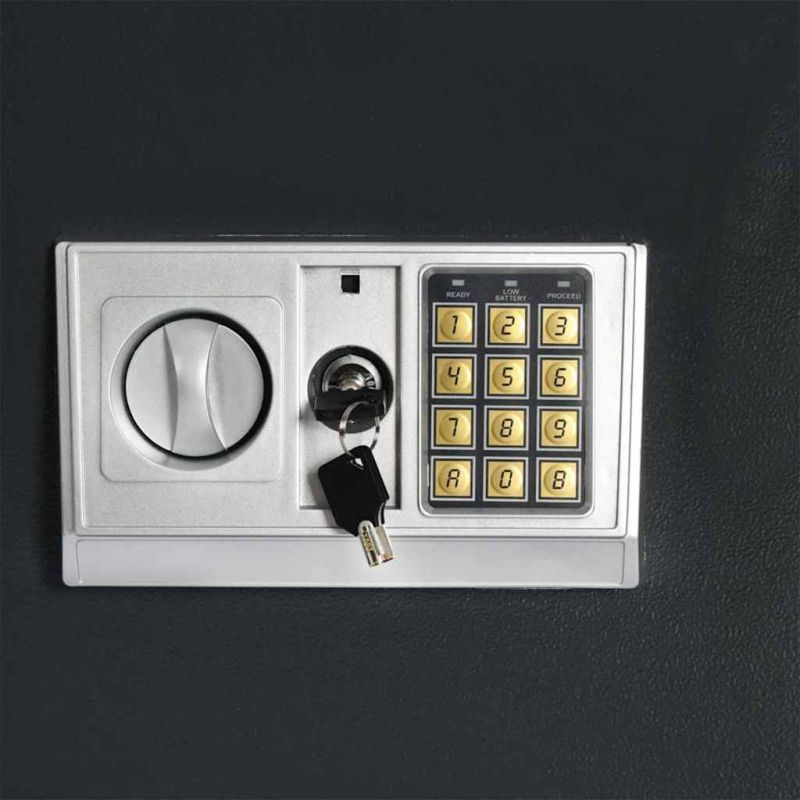 Този електронен сейф е твоята опция за съхранение на важни документи, ценни вещи или скъпи устройства в закрито. Има чист и минималистичен дизайн, който се вписва супер в съвременните настройки. Стилният тъмен сив завършек се комбинира с много декорации, затова идеално пасва на работното ти пространство. С достатъчно място за съхранение и удобни функции, това е страхотно решение за лични и професионални нужди. Здрава стомана Направен от здрава стомана, сейфът е издръжлив и пази твоите ценности от кражба. Спокойно можеш да знаеш, че нещата ти са в безопасност. Електронни ключалки Интелигентната система за заключване ти позволява безопасен достъп без ключ, с код или дори с пръстов отпечатък. Не се притеснявай за загуба на ключове; всичко е улеснено, но и сигурно. Сигурно съхранение С много вътрешно пространство, сейфът е идеален за документи, устройства или ценни вещи. Всичко е подредено и защитено, отговаряйки на твоите нужди за безопасност. Стилен модерен вид Има елегантен и минималистичен дизайн, който се вписва в съвременния декор с тъмен сив нюанс. Изглежда супер в офиса и не привлича излишно внимание. Лесни инструкции за поддръжка Поддържането на сейфа е просто - айде, само го избърсвай със суха кърпа, за да запазиш външността му чиста и да е здрав колкото може по-дълго. Малко грижа му помага да изглежда добре, докато пази нещата ти безопасно за дълго време.