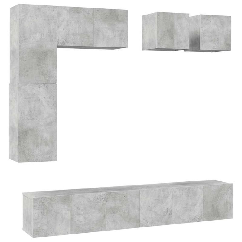 Комплект ТВ шкафове от 8 части, бетонно сив, инженерно дърво