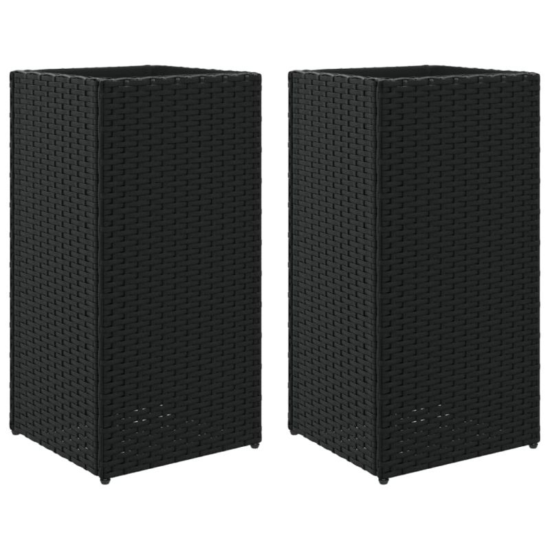Градински кашпи, 2 бр, черни, 30x30x60 см, полиратан