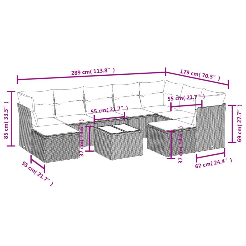Градински диван с възглавници, 10 части, бежов полиратан