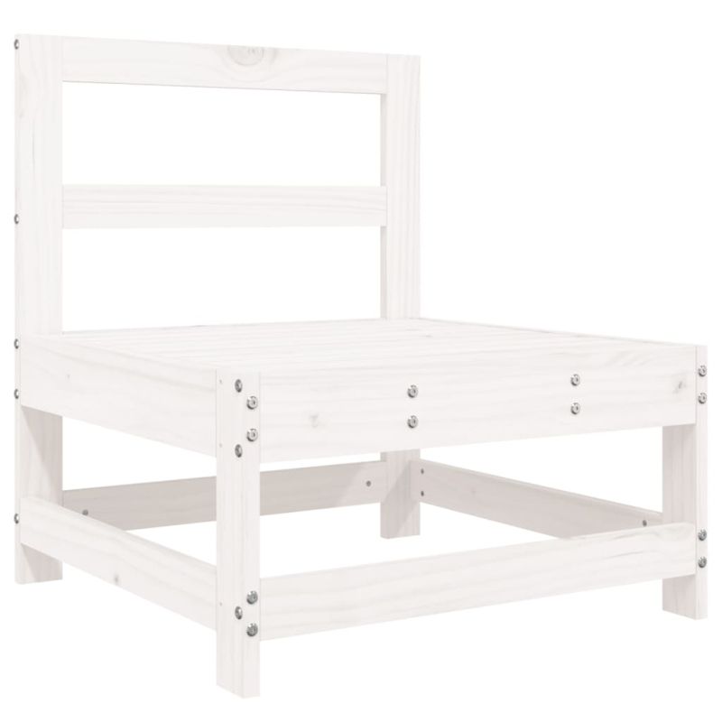 Градински комплект диван от 7 части, бял, масивно дърво бор