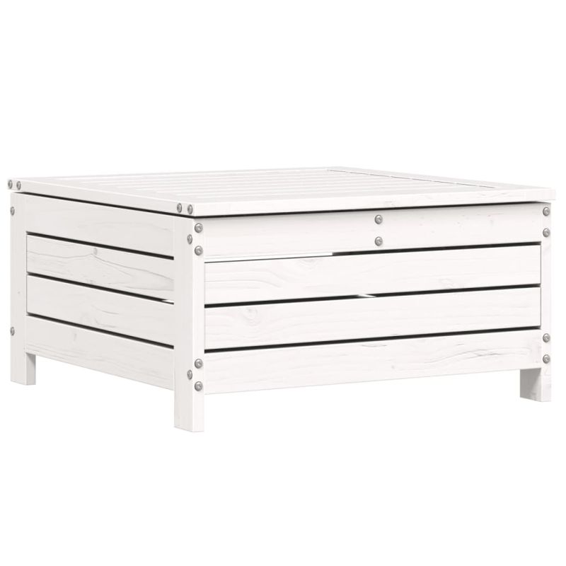 Градински комплект диван от 7 части, бял, масивно дърво бор