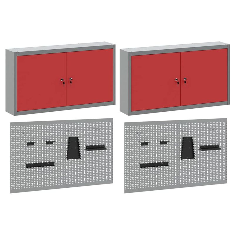 Комплект инструментален шкаф с рафт с заключване 6 pcs Червено
