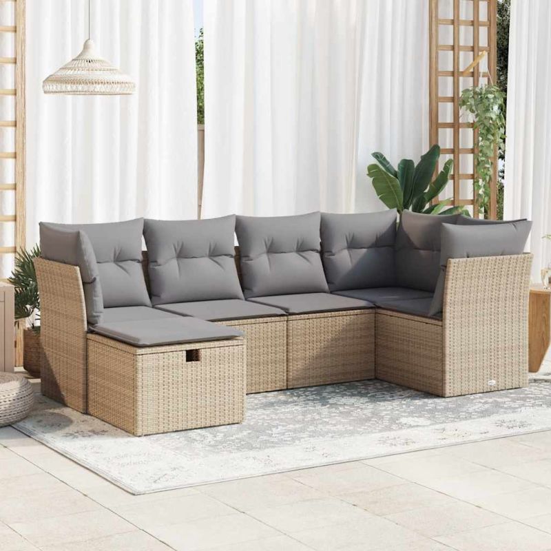 - Купете Градински диван с възглавници, 6 части, бежов полиратан или друг продукт от нашата промоционална секция за да получите 3% отстъпка.