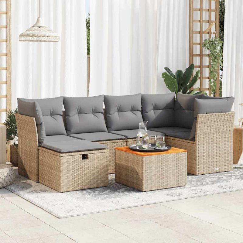 - Купете Градински диван с възглавници, 7 части, бежов полиратан или друг продукт от нашата промоционална секция за да получите 3% отстъпка.