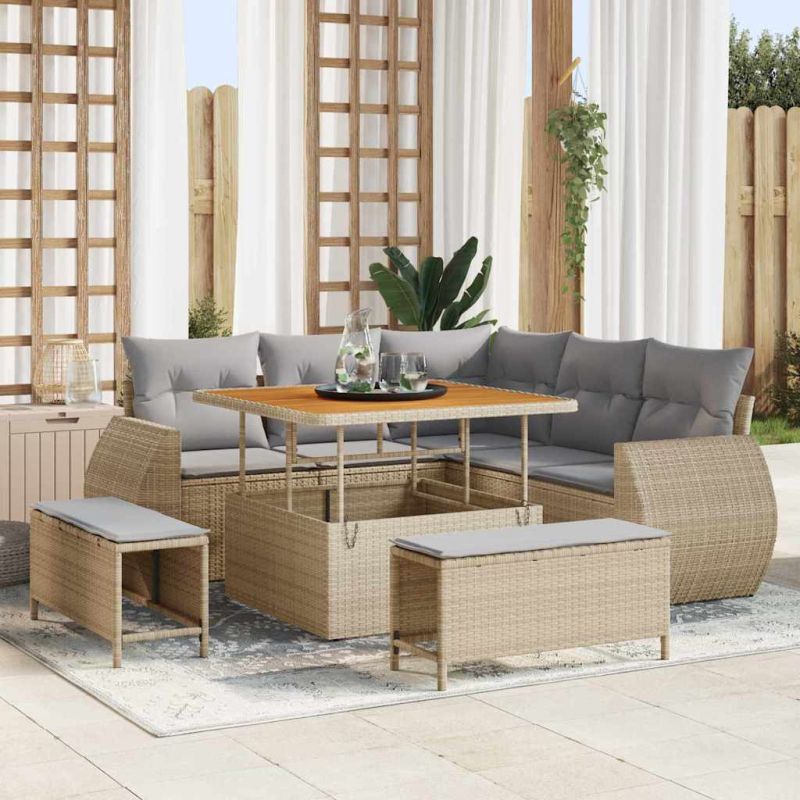 Този модулен градински диван комплект е супер гъвкав, проектиран за всякакви открити пространства, независимо дали става въпрос за тераси или цветни градини. Има стилна визия и е много функционален, което го прави идеален за съвременен интериор. Създава уютна атмосфера, подходяща за социализиране и много приятни моменти на слънце. Материал Полиратан: Заложете на издръжливост с този комплект, направен от полиратан, който е идеален за дълготрайна употреба на открито. Комбинацията от здравина и стил го прави привлекателен и практичен за всяка градина. Включени компоненти: Всеки диван идва с комфортни подложки и устойчив гръб, изработен от полиратан. Възглавниците с полиестер увеличават удобството, осигурявайки перфектното място за сядане навън. Регулируемост и функционалност: Масата с регулируема височина лесно преминава от кафе на обяд, правейки я полезна за всякакви поводи – от бързо кафе до вечеря под звездите. Модулна универсалност: Модулният дизайн дава възможност за настройка спрямо вашите предпочитания, независимо дали имате нужда от интимно пространство или голямо семейно събиране. Лесна поддръжка: За максимална продължителност, използвайте покрития, когато комплектът не се ползва. Минималната поддръжка означава, че комплектът ще изглежда добре дълго време, а гъвкавият му дизайн е бонус за вашия дом.