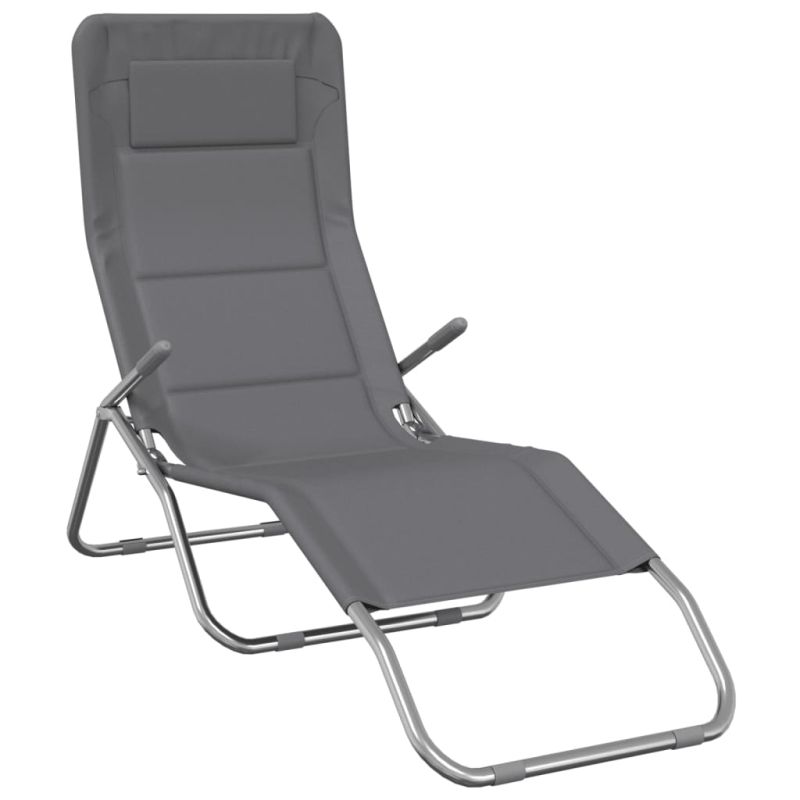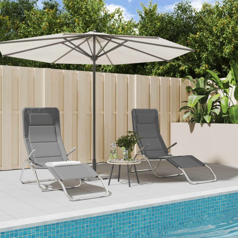 Сгъваеми шезлонги 2 бр сив текстилен и боядисана стомана