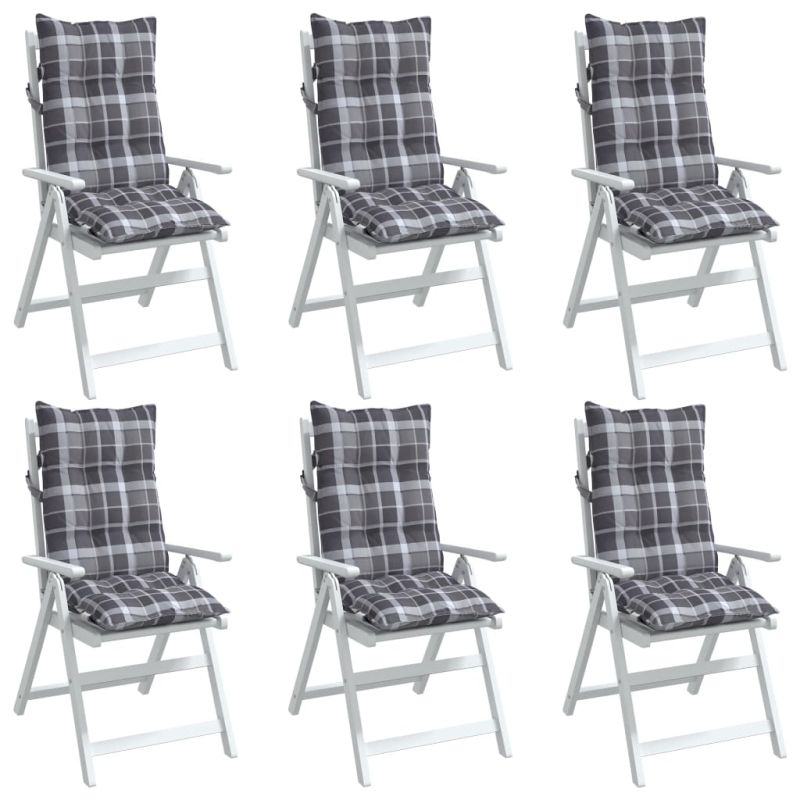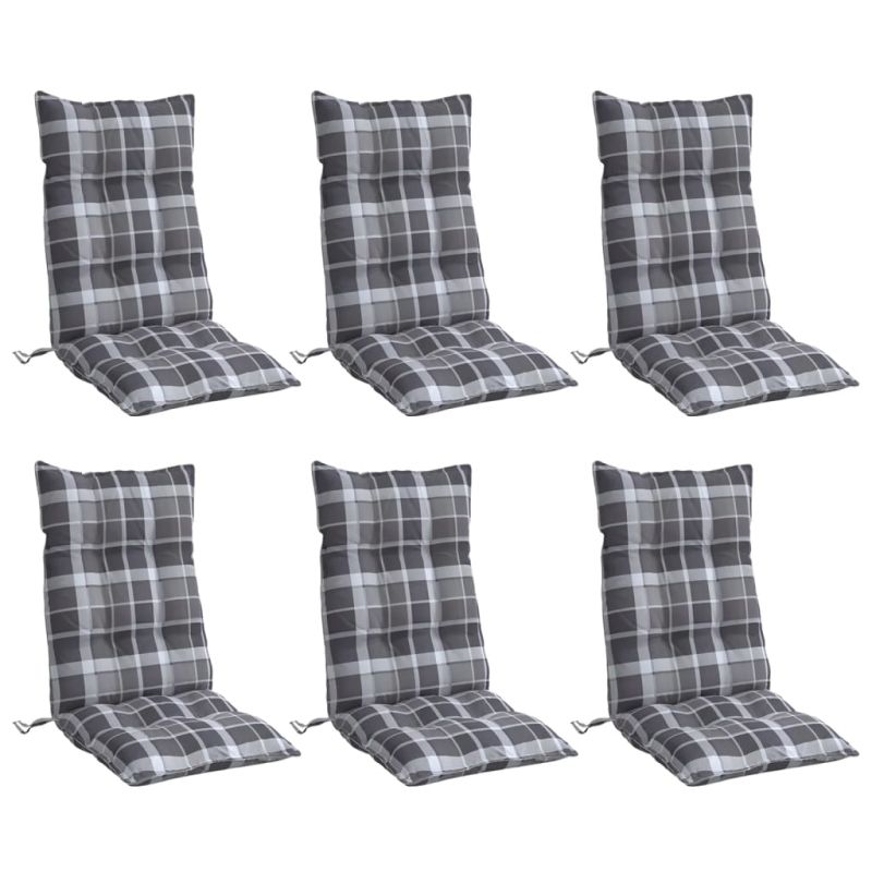 Възглавници за столове с облегалка 6 бр сиво каре Оксфорд плат