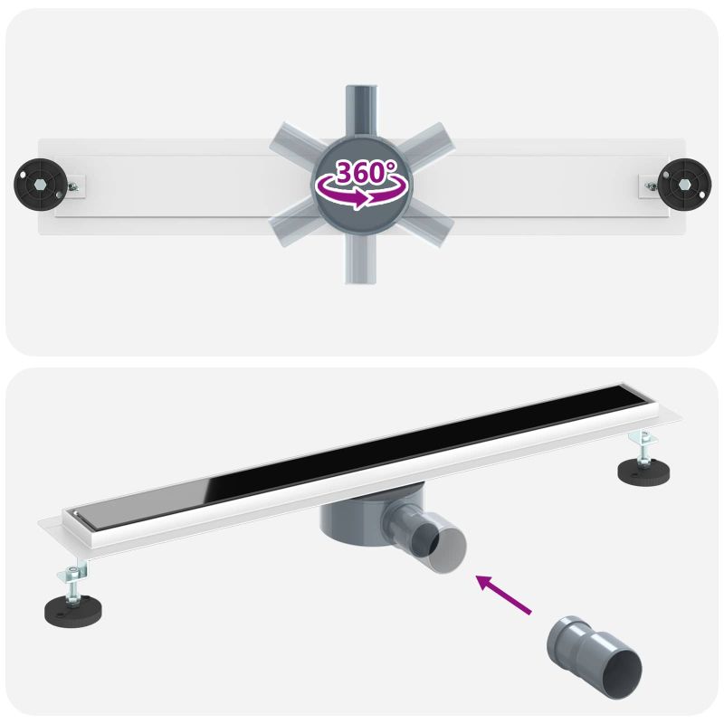 Душов дренаж с стъклен капак и 360° сифона Черно 70 cm