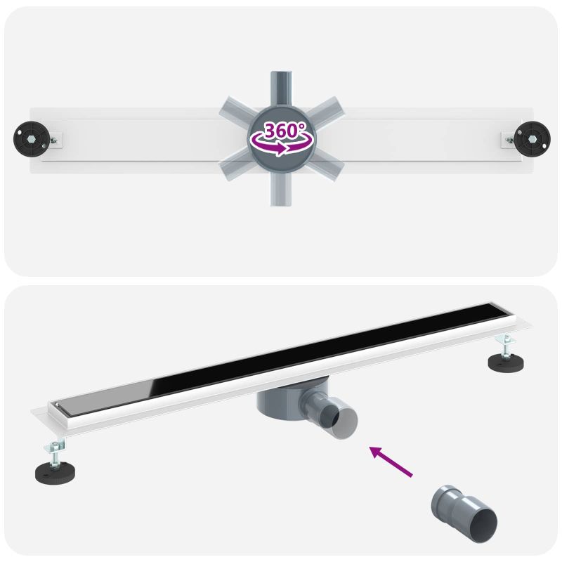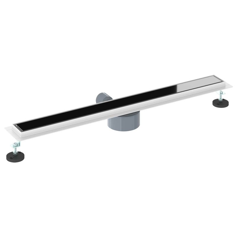 Душов дренаж с стъклен капак и 360° сифона Черно 80 cm