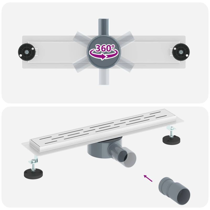 Този модерен дренаж за душ е задължителен за всеки, който иска да обнови банята си с малко стил и точна функционалност. Направен е от здрава неръждаема стомана, а минималистичният му дизайн пасва отлично на различни интериори, подобрявайки цялостната естетика и същевременно ефективно насочвайки водата. Идеален за съвременни бани, този дренаж не само че добавя визуална привлекателност, но и осигурява отлична дренажна производителност навсякъде. Материали: Направен е от неръждаема стомана 304, която е устойчива и дълготрайна. Това гарантира, че дренажът остава функционален и в добро състояние дори след дълго време на влага. Солидната му конструкция предотвратява деформации и износване с времето, което го прави надеждно допълнение за всяка душова установка. Включени компоненти: В комплекта ще намериш всичко необходимо за монтаж. Включен е удобен кука за лесно монтиране и сваляне, водонепропусклива кърпа за плътно уплътняване против течове, и два регулируеми крака за лесно нивелиране. Всеки компонент работи заедно, за да улесни монтажа и да осигури дълготрайна употреба. Регулируеми характеристики: Височината на дренажа може да се регулира от 0-30 мм, което предоставя невероятна гъвкавост за различни душови подове. Тази функция гарантира, че водата се насочва ефективно, като избягва проблеми със застояла вода. Функционален модерен дизайн: Правоъгълната форма и модерен стил следват последните тенденции, придавайки на банята ти чист и актуален вид. Ненатрапчивият му дизайн е не само естетически привлекателен, но и много функционален. Поддръжка и грижа: Поддържането на блестящия вид на този дренаж е лесно. Редовното почистване с нежни препарати помага да се запази външния вид и осигурява ефективно дрениране. Избягвай агресивните химикали, за да удължиш живота му и да запазиш стила му.