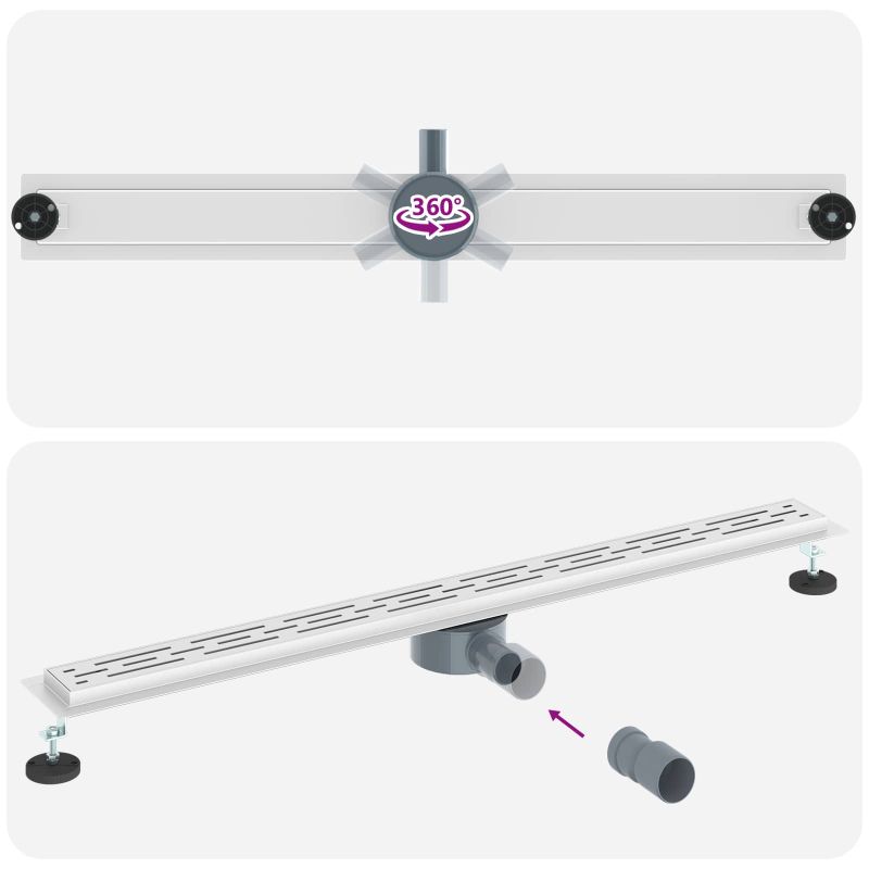 Този модерен дренаж за душ е задължителен за всеки, който иска да обнови банята си с малко стил и точна функционалност. Направен е от здрава неръждаема стомана, а минималистичният му дизайн пасва отлично на различни интериори, подобрявайки цялостната естетика и същевременно ефективно насочвайки водата. Идеален за съвременни бани, този дренаж не само че добавя визуална привлекателност, но и осигурява отлична дренажна производителност навсякъде. Материали: Направен е от неръждаема стомана 304, която е устойчива и дълготрайна. Това гарантира, че дренажът остава функционален и в добро състояние дори след дълго време на влага. Солидната му конструкция предотвратява деформации и износване с времето, което го прави надеждно допълнение за всяка душова установка. Включени компоненти: В комплекта ще намериш всичко необходимо за монтаж. Включен е удобен кука за лесно монтиране и сваляне, водонепропусклива кърпа за плътно уплътняване против течове, и два регулируеми крака за лесно нивелиране. Всеки компонент работи заедно, за да улесни монтажа и да осигури дълготрайна употреба. Регулируеми характеристики: Височината на дренажа може да се регулира от 0-30 мм, което предоставя невероятна гъвкавост за различни душови подове. Тази функция гарантира, че водата се насочва ефективно, като избягва проблеми със застояла вода. Функционален модерен дизайн: Правоъгълната форма и модерен стил следват последните тенденции, придавайки на банята ти чист и актуален вид. Ненатрапчивият му дизайн е не само естетически привлекателен, но и много функционален. Поддръжка и грижа: Поддържането на блестящия вид на този дренаж е лесно. Редовното почистване с нежни препарати помага да се запази външния вид и осигурява ефективно дрениране. Избягвай агресивните химикали, за да удължиш живота му и да запазиш стила му.