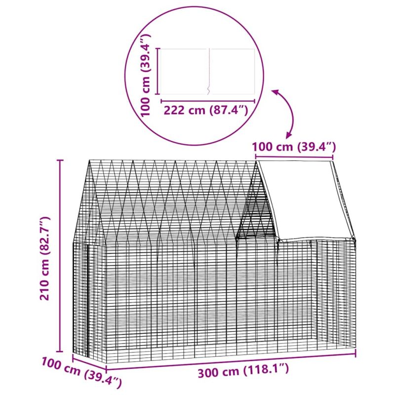 Клетка за заек Сребрист 300 x 100 x 210 см