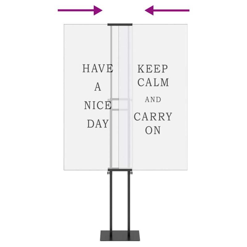 Този щанд е ключов инструмент за показване на продукти на всяко събитие. Проектиран с внимание и прецизност, той има стилно прахово покритие, което му придава чист и елегантен вид, подходящ за всякакви обстановки. Идеален е за вътрешна и външна употреба, осигурявайки гъвкавост за различни рекламни нужди. Материали: Направен е от качествена стомана, този щанд е здрав и надежден. Праховото покритие увеличава устойчивостта, осигурявайки гладък и привлекателен вид. Стоманената конструкция осигурява дълготрайност и здравина, правейки го подходящ за дългосрочна употреба в натоварени обстановки. Включени компоненти: Дисплеят има механизъм за регулиране на височината, който позволява настройка от 110 см до 214 см. Гъвкавостта на щанда увеличава функционалността, позволявайки му да се справя с различни размери и позиции на постерите. Характеристики / Функция / Дизайн: Проектиран да поддържа двойно отображение, този щанд повишава видимостта и рекламното пространство, без да заема допълнително място. Той има нехлъзгаща подложка, която осигурява стабилност на постерите и предотвратява тяхното движение. Препоръчителни употреби: Идеален за изложения, поп-ъп магазини и търговски обекти, този щанд отговаря на нуждите на бизнеса, който търси гъвкави и здрави промоционални инструменти. Лесен за монтаж и многофункционален, той е подходящ за разнообразни рекламни нужди. Грижа и поддръжка: Поддържайте щанда в добро състояние, като го почиствате с влажна кърпа. Редовното почистване предотвратява натрупването на прах и запазва външния вид. Завършекът му устоява на драскотини, което улеснява поддръжката.