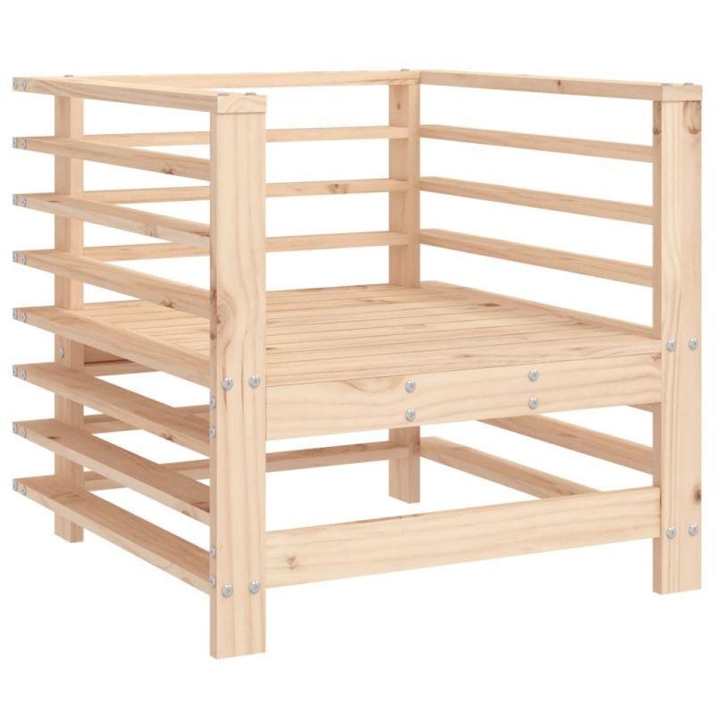 Този дървен градински лаундж комплект, който се откроява с дизайн на летви, ще бъде чудесно допълнение към вашата градина, вътрешен двор или тераса, за да се насладите на уютно време със семейството или приятелите си. Масивна борова дървесина: Масивната борова дървесина е красив естествен материал. Боровата дървесина е с продълговати шарки, а чеповете придават на материала характерния му рустик вид.Здрава и стабилна рамка: Дървените рамки правят лаундж комплекта здрав и стабилен за ежедневна употреба на открито.Модулен дизайн: Комплектът мебели е гъвкав и лесен за преместване. Можете да я комбинирате с други модулни сегменти в уеб магазина, за да създадете свои лични конфигурации на градински лаундж комплект! Добре е да се знае:За да сте сигурни, че вашите външни мебели ще останат красиви, ви препоръчваме да ги защитите с водоустойчиво покривало.Възглавниците не са включени в доставката.
