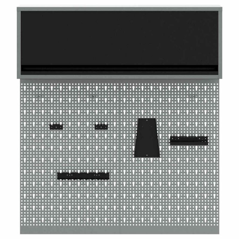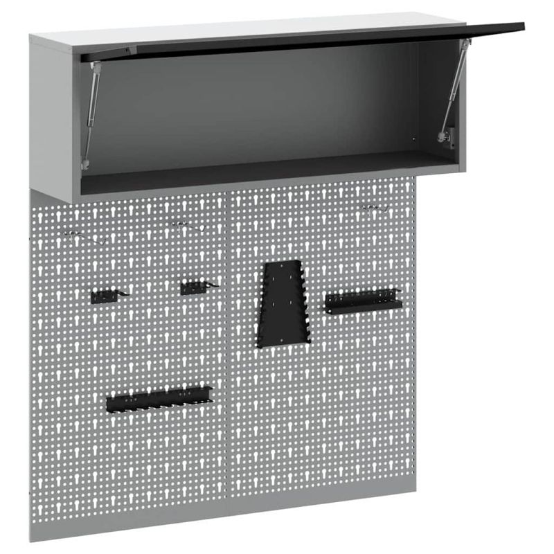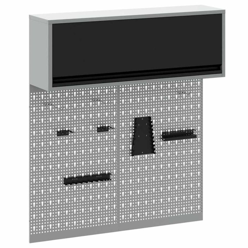 Този универсален комплект за стенен шкаф за инструменти и перфорационна дъска е задължителен за всяка работилница или гараж. С елегантен индустриален дизайн, той носи градски стил с прахово боядисаното желязо и гладкия сив завършек. Предназначен за вътрешна употреба, шкафът предлага надеждно решение за съхранение на инструменти, осигурявайки бърз достъп, а интегрираната перфорационна дъска добавя функционалност с възможност за персонализиране на разпределението на инструментите. Материали: Изработен от здраво прахово боядисано желязо, този комплект шкафове съчетава здравина и стил. Гладката текстура и сивият завършек придават модерен индустриален вид и дълготрайност, а също така се вписват лесно в различни интериорни теми. Обширни компоненти: Комплектът включва метални рафтове от прахово боядисано желязо, осигуряващи стабилно съхранение, което не се отказва при тежест и редовно използване. С перфорационните дъски, потребителите могат лесно да организират инструментите си, оптимизирайки пространството за всякакви видове инструменти. Функционален дизайн и стил: С конструкция, която може да се монтира на стена, шкафът освобождава ценното пространство на пода, което го прави идеален за работилници или гаражи, където е нужна ефективна организация. Това помага в усилията за поддържане на подредено и чисто работно място. Гъвкави възможности за използване: Перфектен за професионални работилници, но и супер удобен за домашни гаражи или DIY пространства. Тази адаптивност позволява на потребителите лесно да се придвижват между различни среди и проекти. Лесни инструкции за поддръжка: Поддържането на шкафа е лесно - просто го бърсиш със суха кърпа, за да запазиш изисканото му изглеждане. Простите стъпки за почистване гарантират продължително задоволство и дълготрайност на шкафа.