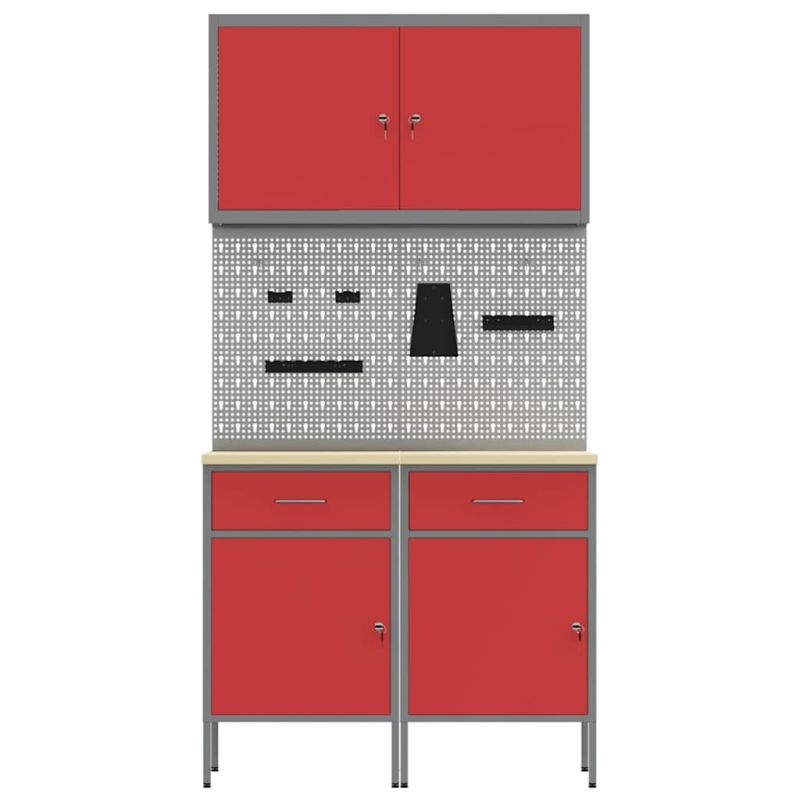 Работна маса с чекмедже 5 pcs Червено 100 x 55 x 200 см Стомана