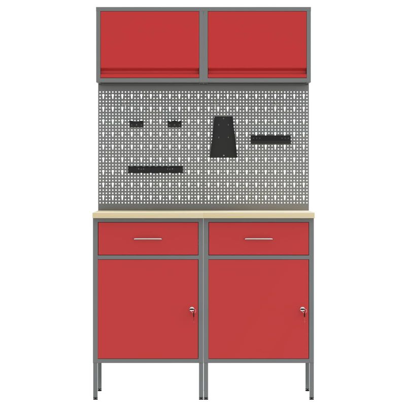 Комплект работни шкафове с чекмедже с рафт 6 pcs Червено