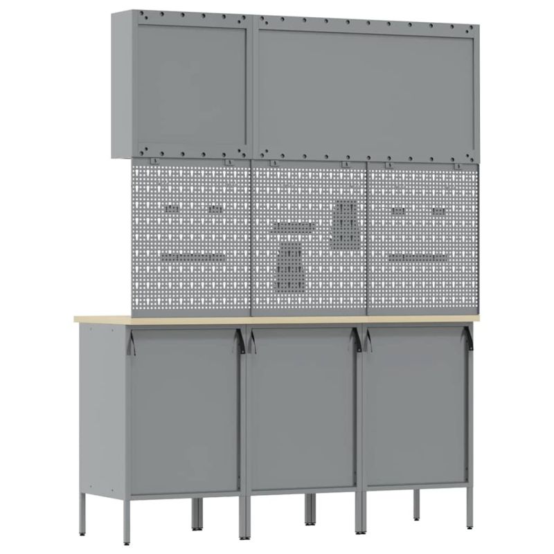 Този модерен работен шкаф без усилие комбинира форма и функция с индустриален стил. Изработен от инженерна дървесина и стомана, той е с уникален правоъгълен дизайн. Подходящ за всякакви хобита и професионална работа, този шкаф е чудесно решение за организиране на инструменти и подобряване на работната атмосфера. Стоманена конструкция: Изработен от инженерно дърво и стомана, този шкаф е здрав и надежден. Въпреки че изглежда масивен, материалите му добавят стил на работното ви пространство. Лесно се поддържа — просто го избърсвате с влажна кърпа. Универсално съхранение: С много отделения, чекмеджета и рафтове, шкафът предлага оптимални решения за съхранение на инструменти и материали. Той е идеален за подреждане на всичко, от големи инструменти до малки аксесоари. Индустриален дизайн: С вдъхновение от градски лофтове, шкафът допълва всякакви съвременни интериори. Неговият индустриален вид е атрактивен и модернизиран. Лесна поддръжка: Поддържането му е просто и удобно. Редовното забърсване е достатъчно, за да изглежда във форма. Лесен монтаж: Сглобяването е лесно и изисква само двама души и отвертка. Подробните инструкции ще улеснят процеса.