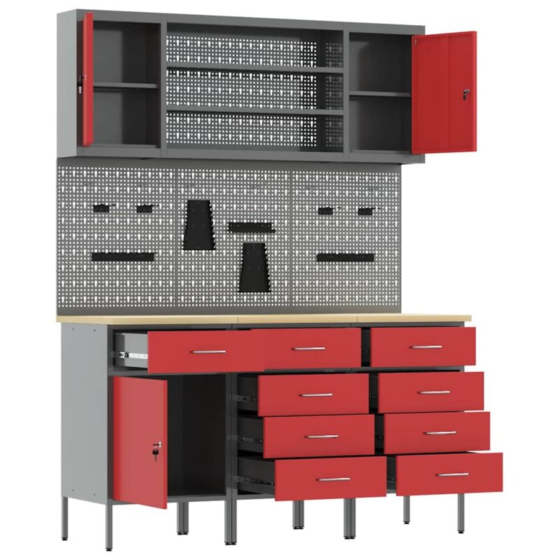 - Купете Работна маса с чекмедже 7 pcs Червено 150 x 55 x 200 см Стомана или друг продукт от нашата промоционална секция за да получите 3% отстъпка.