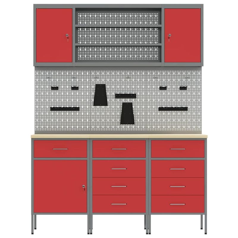 Работна маса с чекмедже 7 pcs Червено 150 x 55 x 200 см Стомана